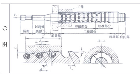 校準(zhǔn)部分上的刀齒起修正作用。其齒數(shù)較少,各齒直徑相同 |
